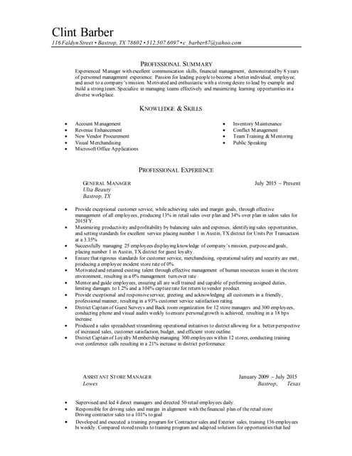 Barber / Stylist Resume Example (Park Place Barber & Spa ...